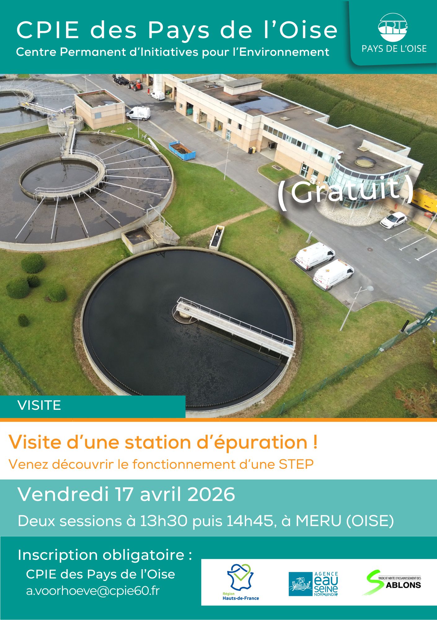 📢 VISITE DECOUVERTE ! ✨ Venez visiter une station d’épuration ! 💧💡 Découvrez cet équipement essentiel qui a pour but d'assainir les eaux usées urbaines avant leur rejet dans les cours d'eau. 📆 Vendredi 17 avril 2026 sur deux créneaux possibles: 13h30 ou 14h45 📍 MERU (60) ⚠️ Inscription obligatoire : a.voorhoeve@cpie60.fr
