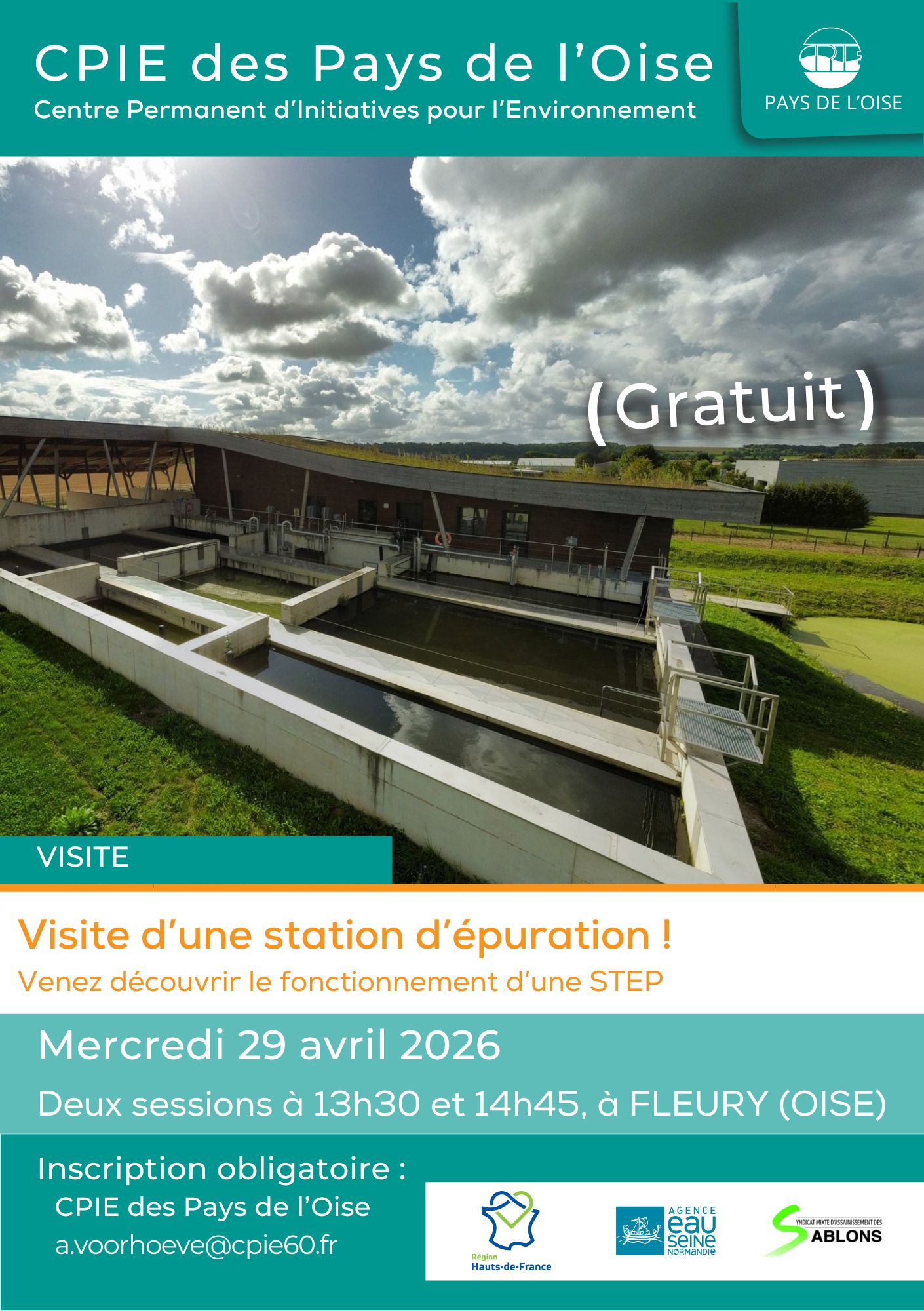 📢 VISITE DECOUVERTE ! ✨ Venez visiter une station d’épuration ! 💧💡 Découvrez cet équipement essentiel qui a pour but d'assainir les eaux usées urbaines avant leur rejet dans les cours d'eau. 📆 Mercredi 29 avril 2026 sur deux créneaux possibles: 13h30 ou 14h45 📍 FLEURY (60) ⚠️ Inscription obligatoire : a.voorhoeve@cpie60.fr